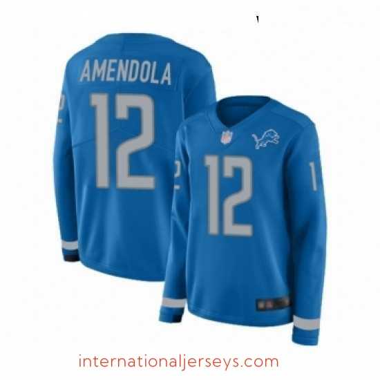 Overseas sports fanatics feast your eyes on this wonderful Exquisite Womens Detroit Lions 12 Danny Amendola Limited Blue Therma Long Sleeve Football Jersey Hurry exclusive offer for international buyers place your order promptly! Packed with Export ready NFL products, Overseas sports gear, Global fan gear it’s a prime choice for international trade Order now!