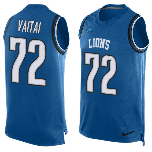 High quality Lions #72 Halapoulivaati Vaitai Blue Team Color Men’s Stitched NFL Limited Tank Top Jersey For a short time available globally. Get yours now and cheer on your team in style.