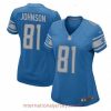 High quality Womens Nike Detroit Lions 81 Calvin Johnson Elite Light Blue Team Color NFL Jersey