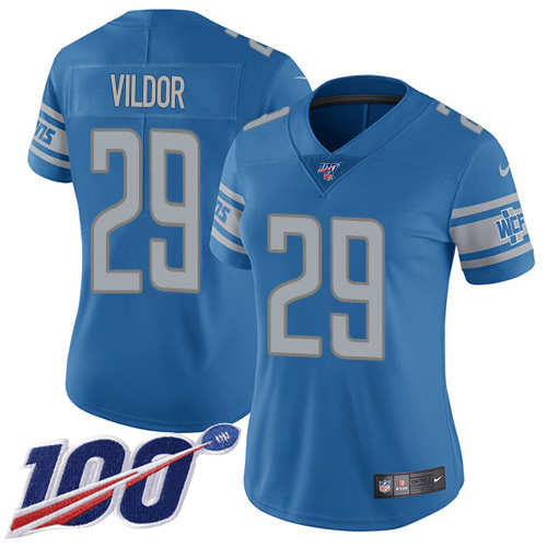 Outstanding Lions #29 Kindle Vildor Blue Team Color Women’s Stitched NFL 100th Season Vapor Untouchable Limited Jersey Limited stock! Order now to sport this iconic jersey and showcase your team spirit.