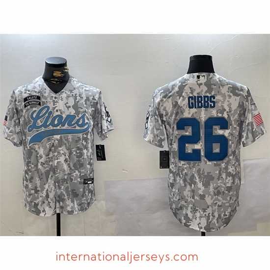 Premium Detroit Lions 26 Jahmyr Gibbs 2024 Arctic Camo Salute To Service Stitched Baseball Jersey Act fast only a few left for global shipping secure yours today