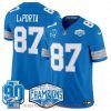 Premium Detroit Lions 26 Jahmyr Gibbs Blue 2024 NFC North Champions 90th Anniversary Patch F.U.S.E Vapor Limited Stitched Jersey