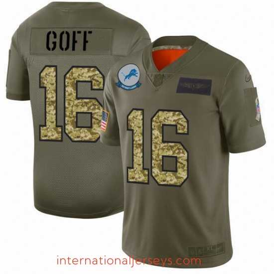 Top notch Detroit Lions 16 Jared Goff Nike 2019 Olive Camo Salute To Service Limited NFL Jersey Limited stock available order now to represent your team in style
