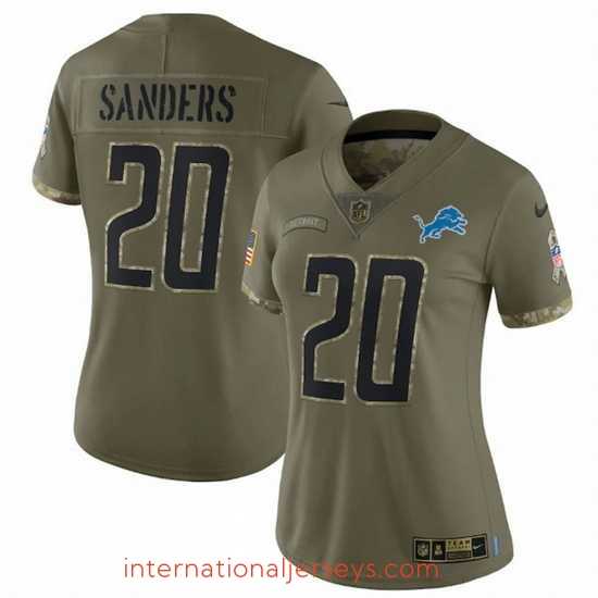 Top notch Detroit Lions 20 Barry Sanders 2022 Olive Salute To Service Limited Stitched Jersey With high demand overseas don’t wait order immediately and stand out